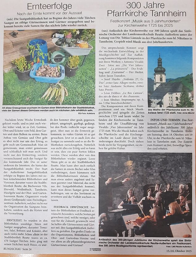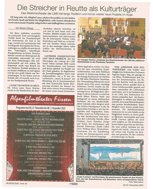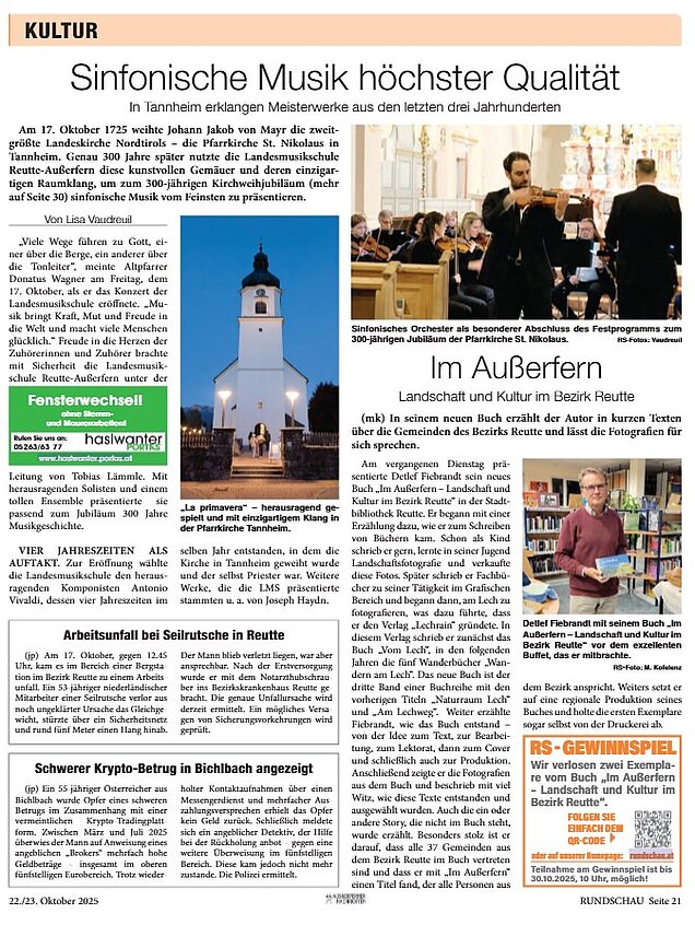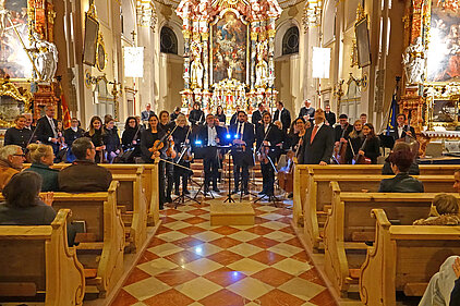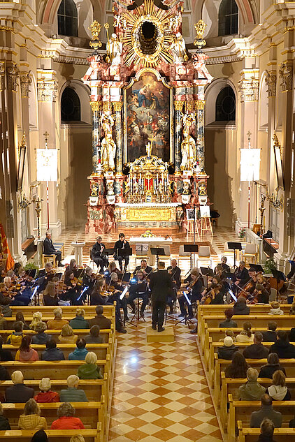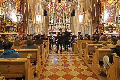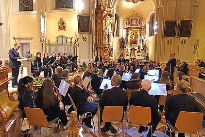 Anläßlich der Kirchweihe vor 300 Jahren spielte das Sinfonische Orchester der Landesmusikschule Reutte-Außerfern unter der Leitung von Dir. Tobias Lämmle in der Pfarrkirche zum heiligen Sankt Nikolaus in Tannheim.