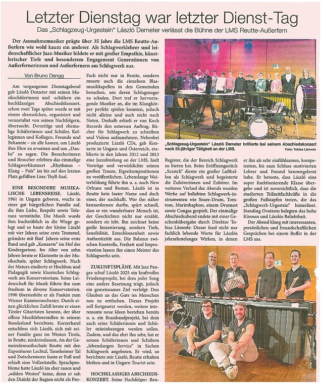 Schlagwerkkonzert der Lehrkräfte - Abschiedskonzert für Laszlo Demeter